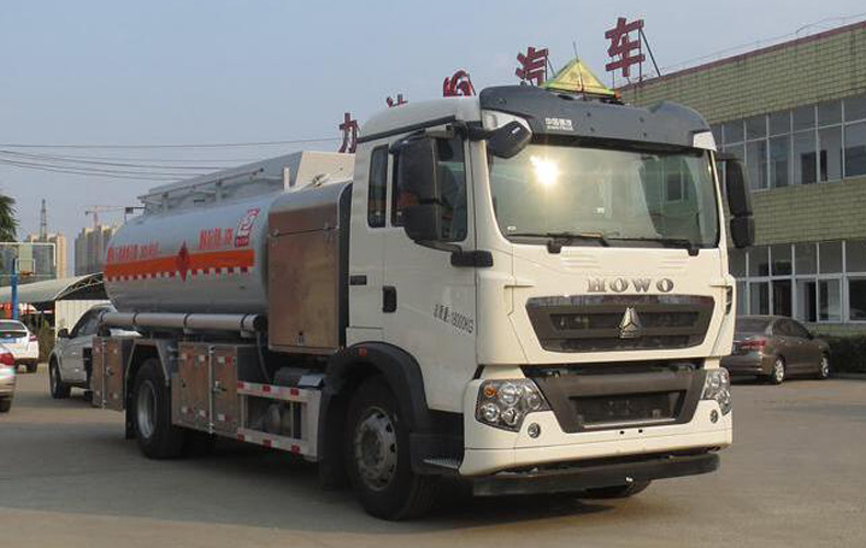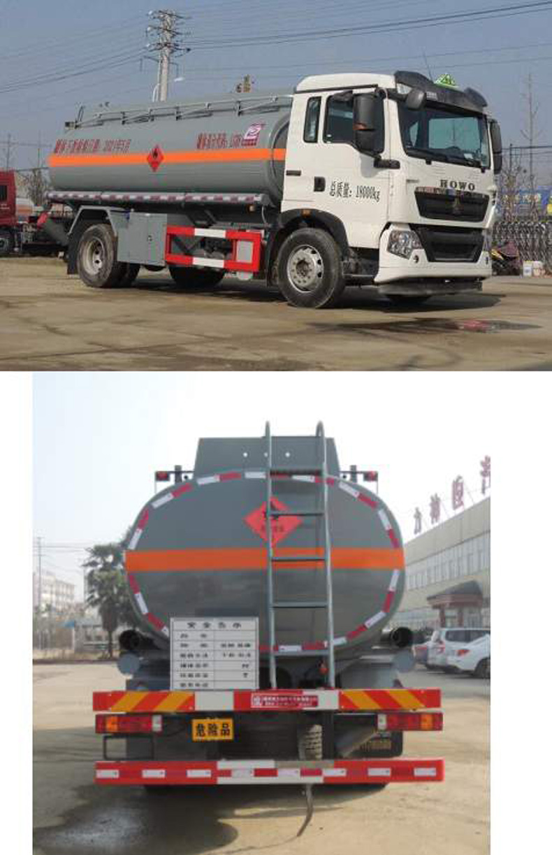 罐體有效容積:12立方米,危險貨物運輸車輛類型:FL型輛,介質類項號:3;加油裝置前置時,罐體尺寸(長×長軸×短軸)(mm)為:4700×2160×1500;當加油裝置下置時,罐體尺寸(長×長軸×短軸)(mm)為:5700×2000×1350;軸距/前懸/后懸對應關系為(mm):4700/1430/2570,5000/1430/2270;隨底盤選裝工具箱樣式,選裝擋泥板及加油倉廂門和尾部不帶工具箱;側、后防護裝置材料材質:Q235B,側、后防護均用螺栓連接,后部防護裝置斷面尺寸(寬×高)80×150(mm),后部防護離地高度:500mm;安裝具有衛星定位功能的行駛記錄儀,排氣管前置,安裝前輪盤式制動器及限速裝置,限速80km/h,僅采用底盤子午線輪胎;ABS系統控制器生產企業/型號為威伯科(上海)管理有限公司/4460046300;選裝EBS,EBS系統控制器生產企業/型號為威伯科(上海)管理有限公司/EBS3;加油裝置型號/生產企業:CS20D1110F/正星科技有限公司,80YHCB-60/山東博山齊魯油泵廠,YHCB-1000/5-A,YHCB-1000/5B,YHCB-300/3-B-L/永嘉三江石油機械廠. 該車后軸為采用空氣懸架.
