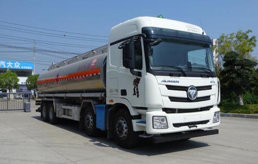 罐體總容量:26.5立方米,罐體有效容積:25.27立方米;危險貨物運輸車輛的類型為FL型,介質zui大密度715千克/立方米;罐體尺寸(長×長軸×短軸)(mm):8750×2350×1650;側、后防護裝置材料材質:Q235B,側、后防護均采用螺栓連接,后防護裝置斷面尺寸為(mm):80×150,后部防護離地高度:420mm;隨底盤選裝駕駛室,選裝罐體兩側管廂樣式及出口箱樣式,選裝罐體尾部帶落水管和后示廓燈支架;安裝具有衛星定位功能的行駛記錄儀,安裝前輪盤式制動器和限速裝置,限速80km/h,僅采用底盤子午線輪胎;安裝EBS,EBS型號/生產企業:0 486 106 XXX/克諾爾商用車系統企業管理(上海)有限公司;發動機型號及油耗值(L/100km)為:X11NS6B360(33.6),該車后軸采用空氣懸架;轉向輪安裝bao胎應急防護裝置.該車型可選裝ETC車載裝置;